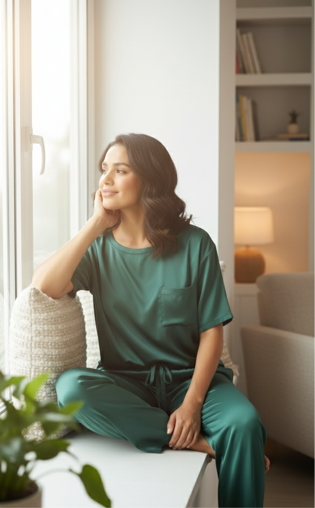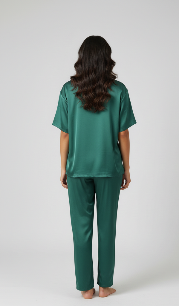 Refresh your loungewear collection with the soothing charm of this Mint Green Satin Loungewear Set. Crafted from silky satin, it blends elegance with everyday comfort — perfect for relaxing at home or lounging in style.
