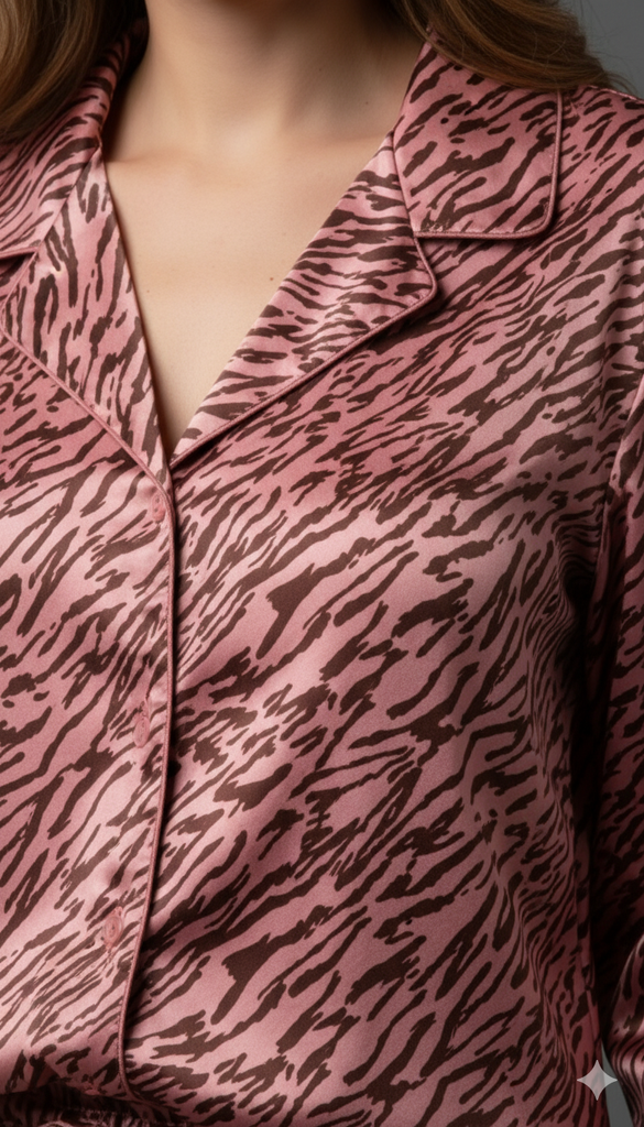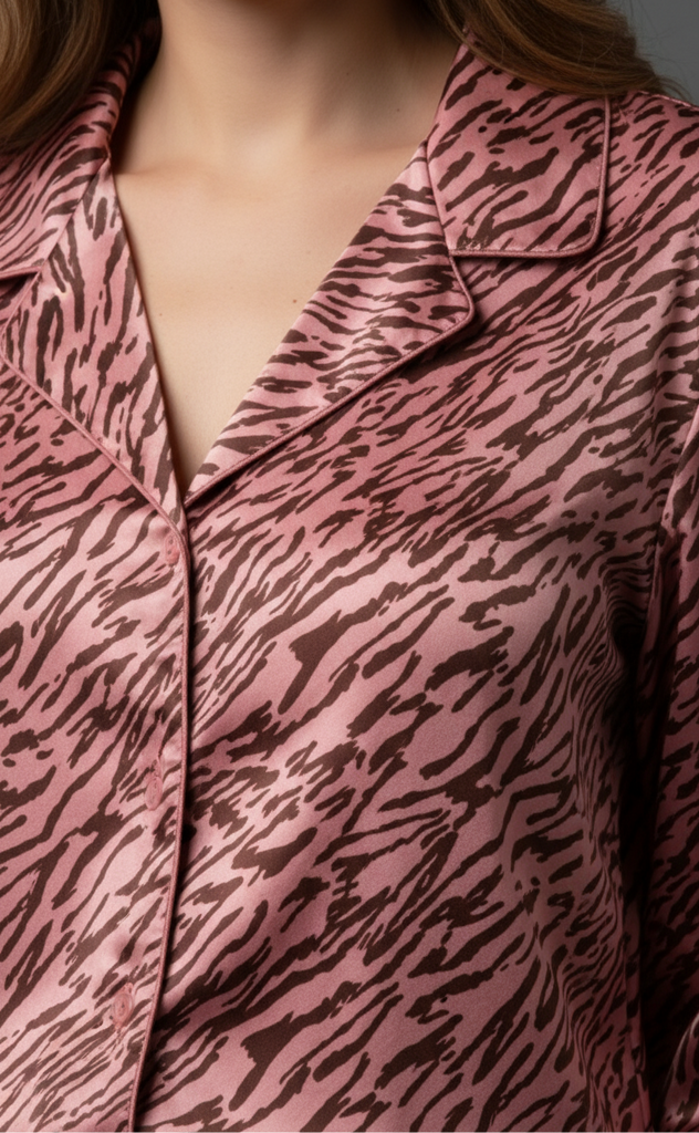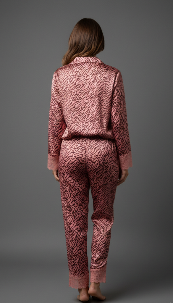 Relax in fierce style with this comfy yet striking tiger-print loungewear set — perfect for lounging at home with a touch of wild sophistication.